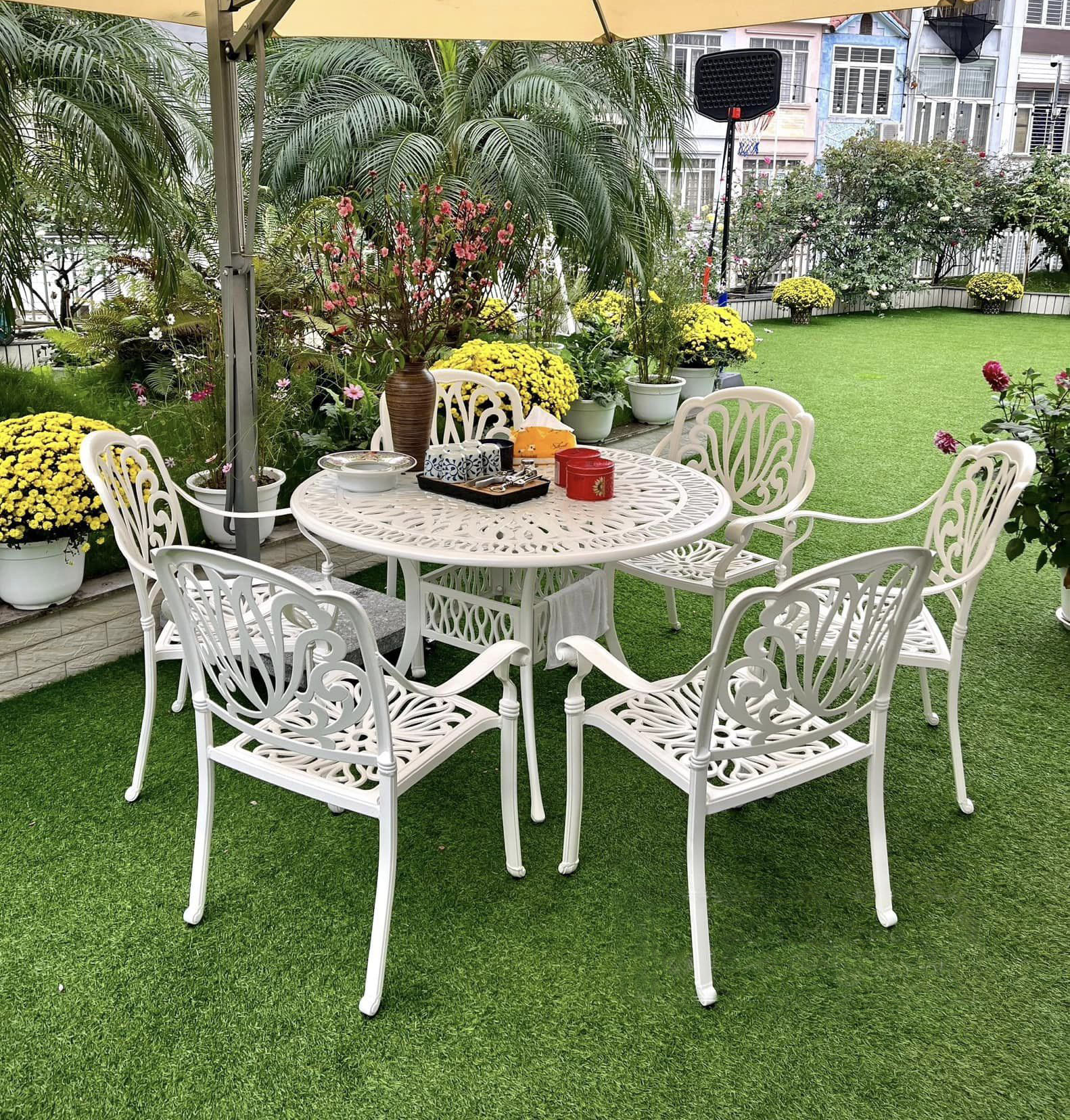 Bộ Bàn Ghế Sân Vườn Nhôm Đúc 6 Ghế D80