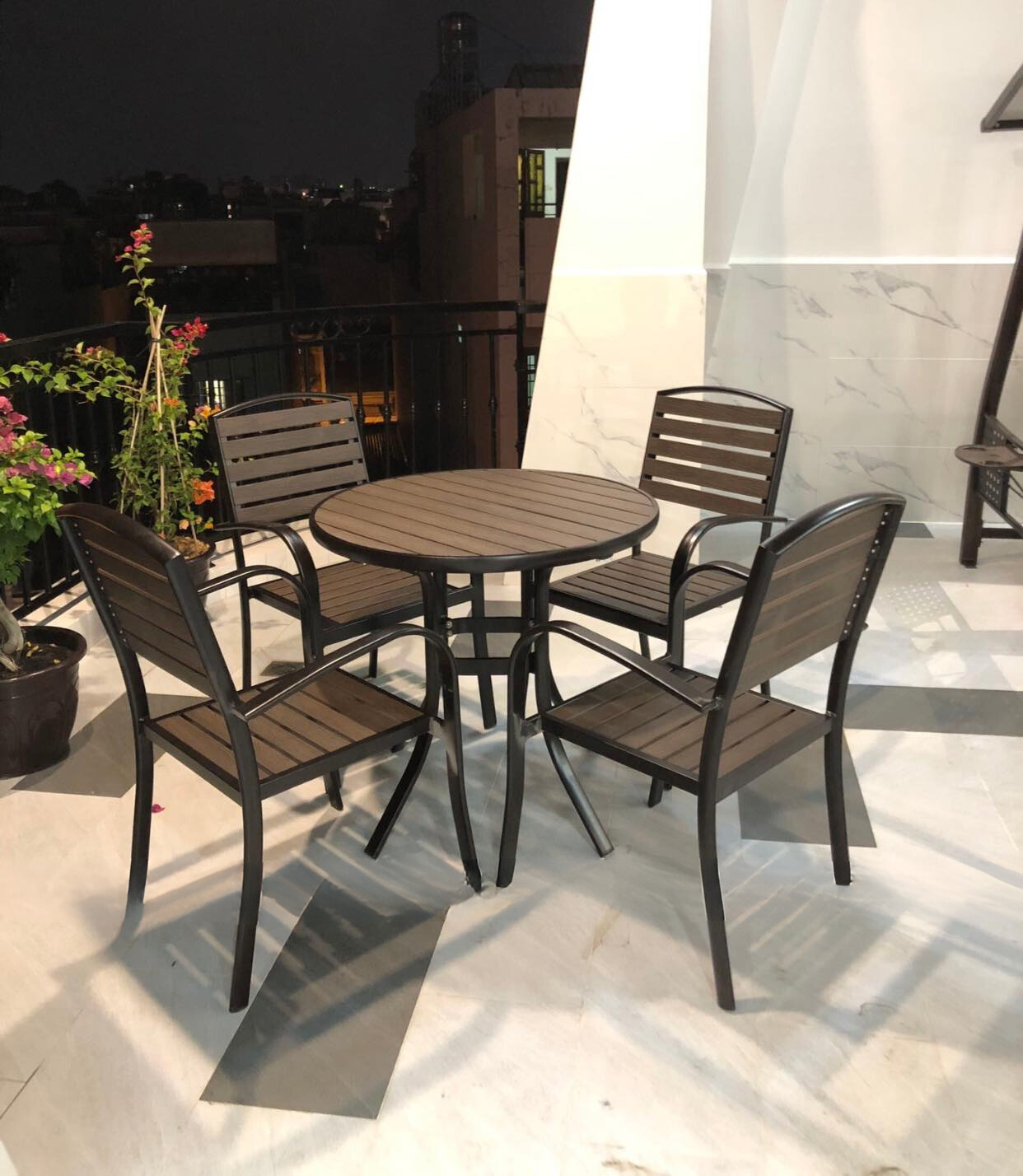 Bàn Ghế Ngoài Trời Polywood BA-D80 Cho Không Gian Ban Công Nhỏ Gọn