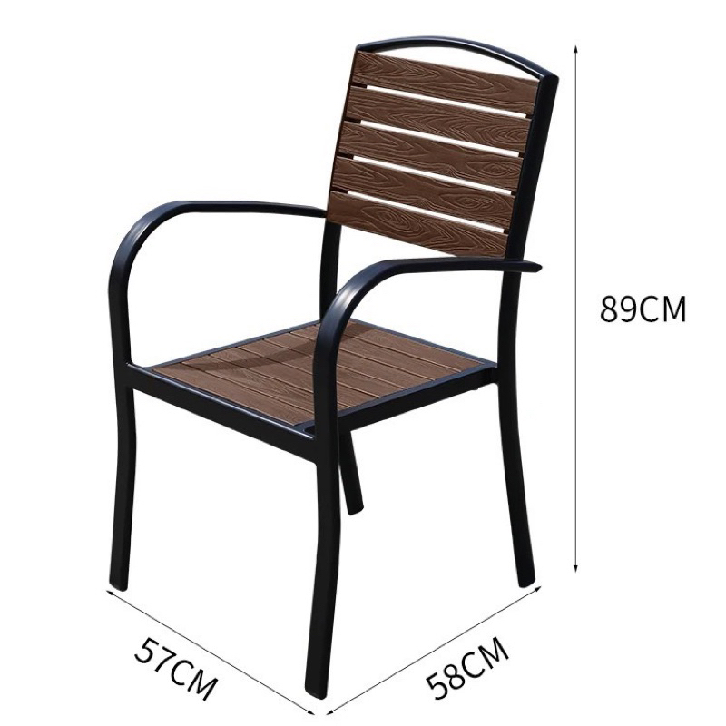 Phần mặt bàn được làm từ gỗ nhựa composit cao cấp, với vân gỗ tự nhiên đẹp mắt, chống thấm, chống mối mọt và không cong vênh khi để lâu ngoài trời. Composit là vật liệu hiện đại, thân thiện với môi trường và được đánh giá cao về độ bền trong điều kiện khí hậu nóng ẩm.