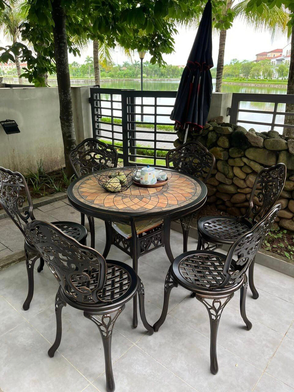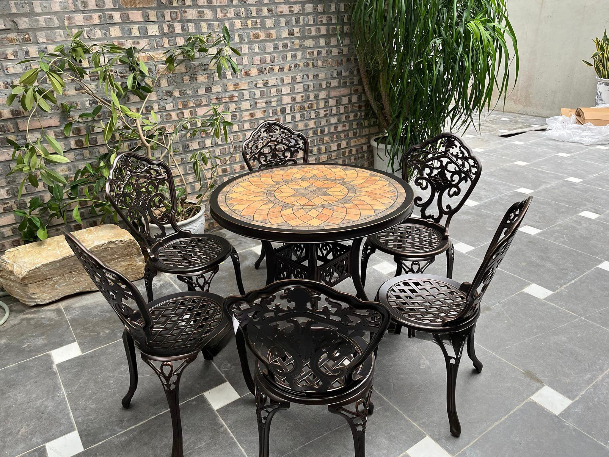 Ngày nay bàn ghế sân vườn ngoài trời là sản phẩm ngoại thất không thể thiếu trong không gian sống của mỗi gia đình, nó không chỉ đáp ứng được nhu cầu thư giãn của người sử dụng mà còn mang theo vẻ đẹp sang trọng, tao nhã. Với những chi tiết hoa văn cổ điển màu nâu đồng đã đánh bật dòng sản phẩm này một cách hài hòa tạo nên một vẻ đẹp tiền ẩn cho bộ bàn ghế sân vườn, đặc biệt là nó được thiết kế nhỏ gọn nên bạn có thể đặt ở bất kỳ vị trí nào trong khuôn viên nhà bạn.