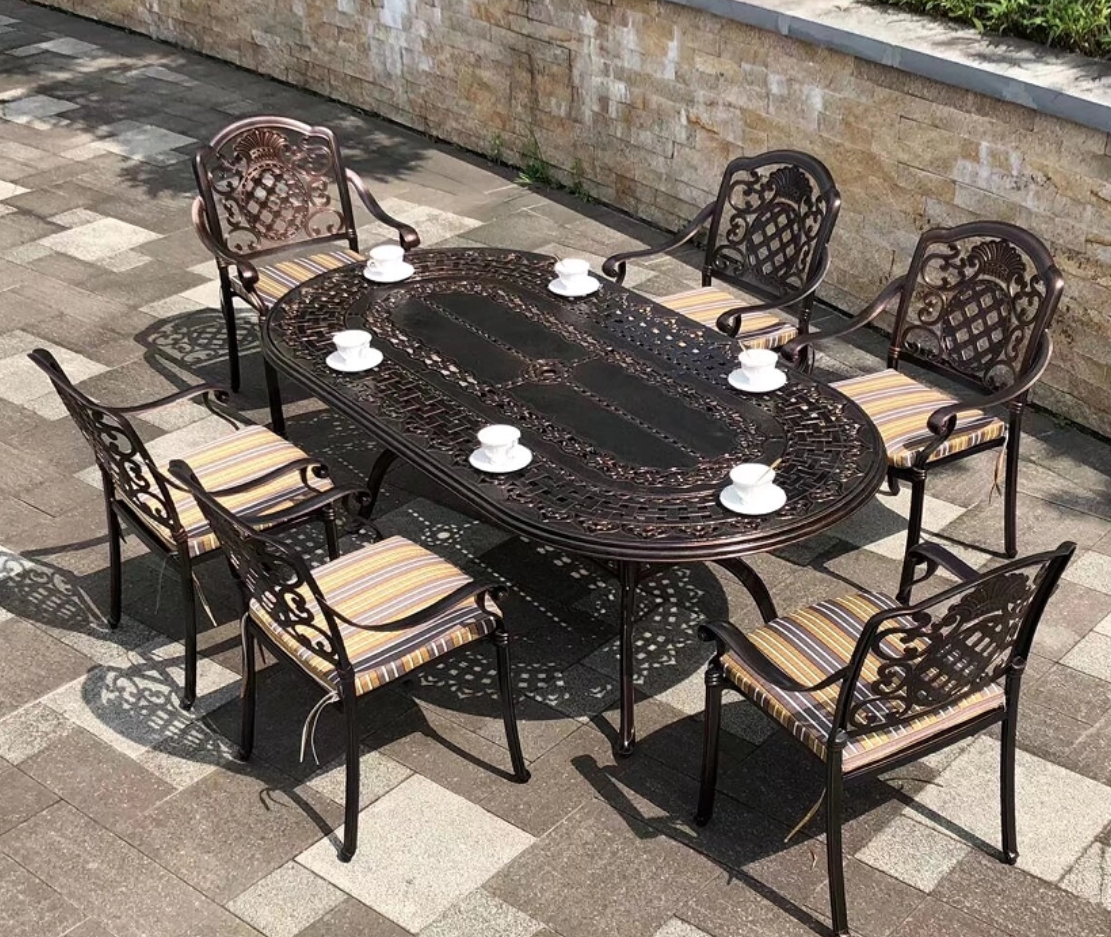 Bộ bàn ghế sân vườn nhôm đúc HOV-180 có kích thước là 180*105*73cm được thiết kế tỉ mỉ với hoa văn tinh xảo , mang phong cách cổ điển phù hợp với nhiều không gian như những gia đình có sân vườn rộng, nhà biệt thự, các khu resort, khu nghỉ dưỡng…..