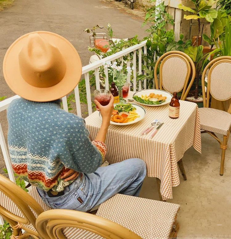Chất liệu bàn: Chân gang đúc sơn tĩnh điện, bàn mặt gỗ phủ nhựa Resin - Kích thước ghế: L400 x W550 x H450/880 (mm)