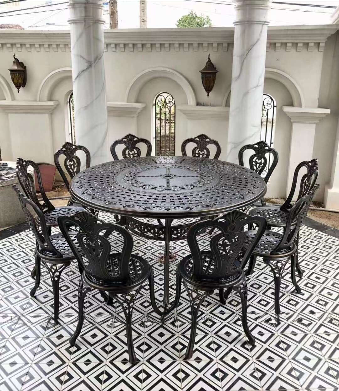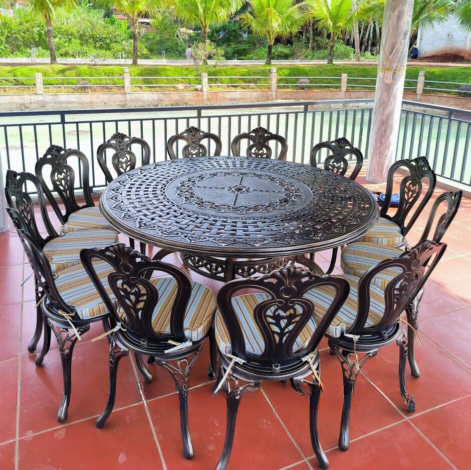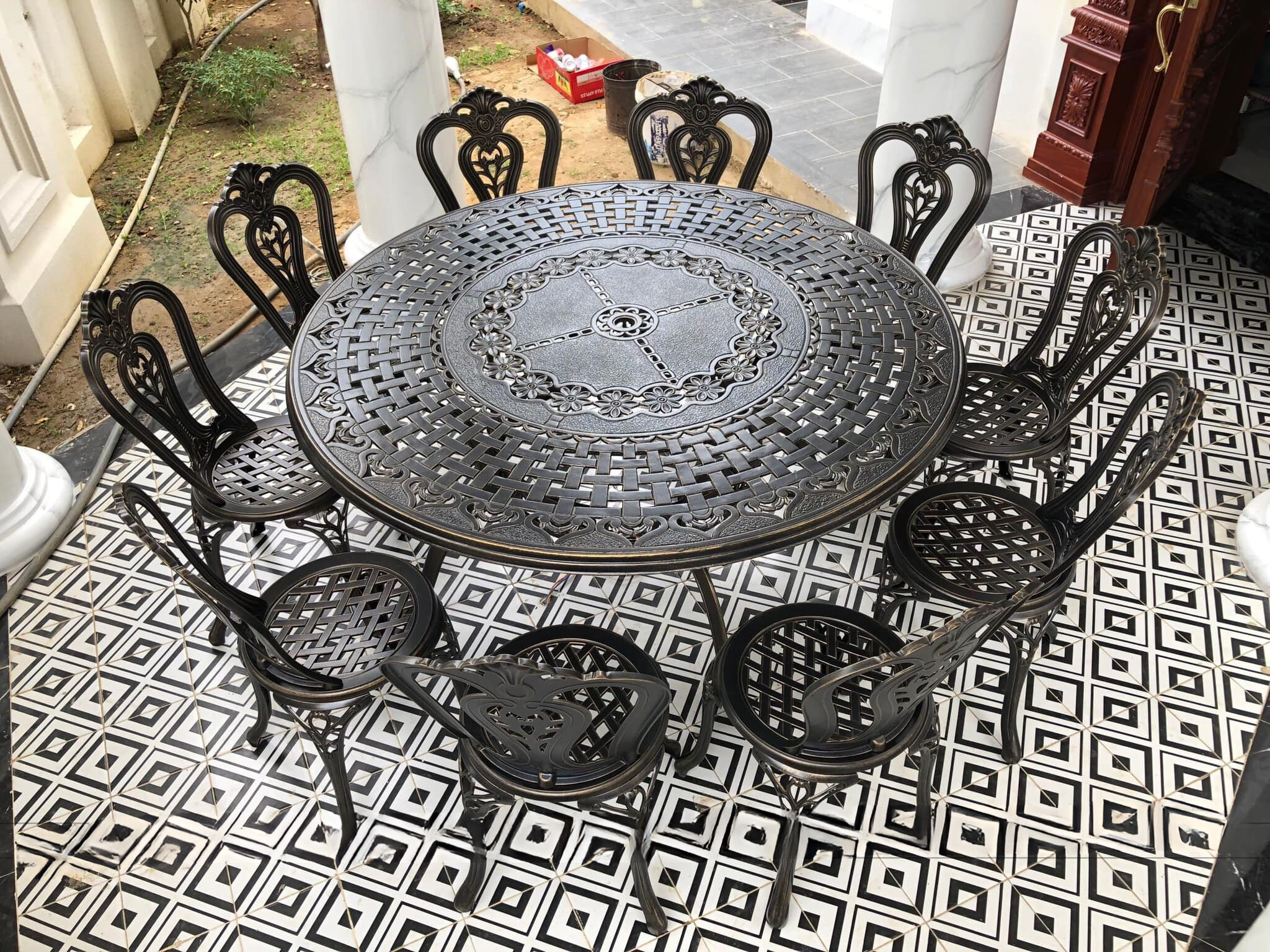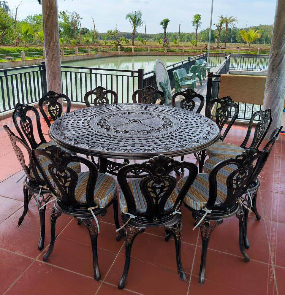 Không gian sân vườn là nơi lý tưởng để thư giãn sau những giờ làm việc căng thẳng hay để quây quần cùng gia đình, bạn bè trong những dịp đặc biệt. Để biến nơi đây thành một không gian đẳng cấp, việc lựa chọn nội thất phù hợp là điều không thể thiếu. Bộ bàn ghế nhôm đúc hình tròn đường kính 1m5 với 10 ghế vương miện là giải pháp hoàn hảo để mang lại sự tinh tế, tiện nghi và sang trọng cho không gian ngoài trời của bạn.