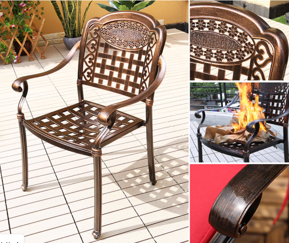 Phần ghế thiết kế đan ô vuông tinh tế, với các khoảng hở hợp lý giúp thoáng khí, tạo sự thoải mái cho người ngồi ngay cả trong những ngày nắng nóng. Cấu trúc khung nhôm đúc phủ sơn tĩnh điện cao cấp, chống oxy hóa, không bong tróc hay gỉ sét khi sử dụng lâu dài ngoài trời. Từng chi tiết đều được trau chuốt nhằm đảm bảo tính thẩm mỹ và độ bền cao nhất theo thời gian.