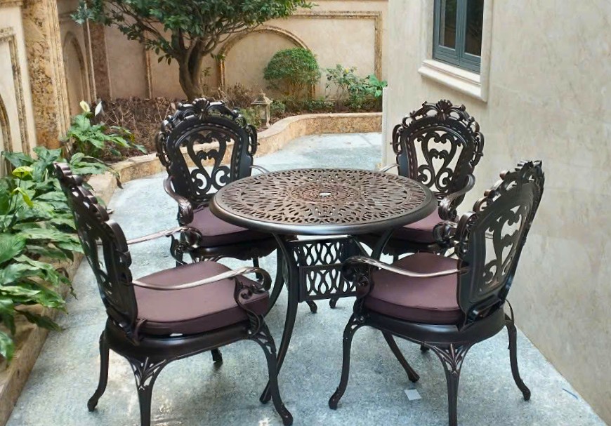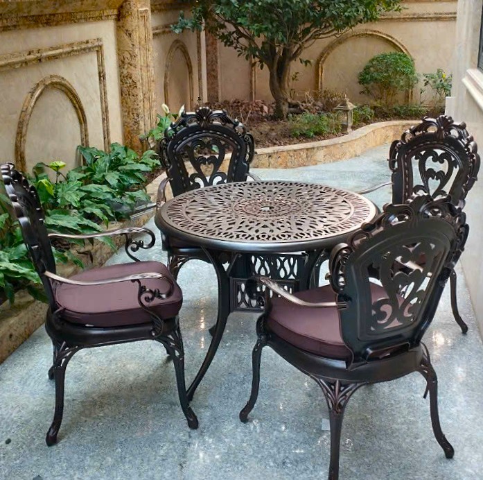Bàn Ghế Sân Vườn Ngoài Trời được thiết kế tinh xảo, mang tính thẩm mỹ cao, bộ bàn ghế này được làm từ hợp kim nhôm, đươc phủ thêm một lớp sơn tĩnh điện cao cấp giúp cho sản phẩm ko bị han gỉ hay bong tróc khi để ở ngoài trời. Với những ưu điểm trên bạn có thể bố trí bộ bàn ghế nhôm đúc này tại nhiều không gian khác nhau từ sân thượng, đến ban công hay sân vườn mà bạn không phải lo lắng về bộ bàn ghế của mình bị hao mòn, gỉ sét, oxi hóa….
